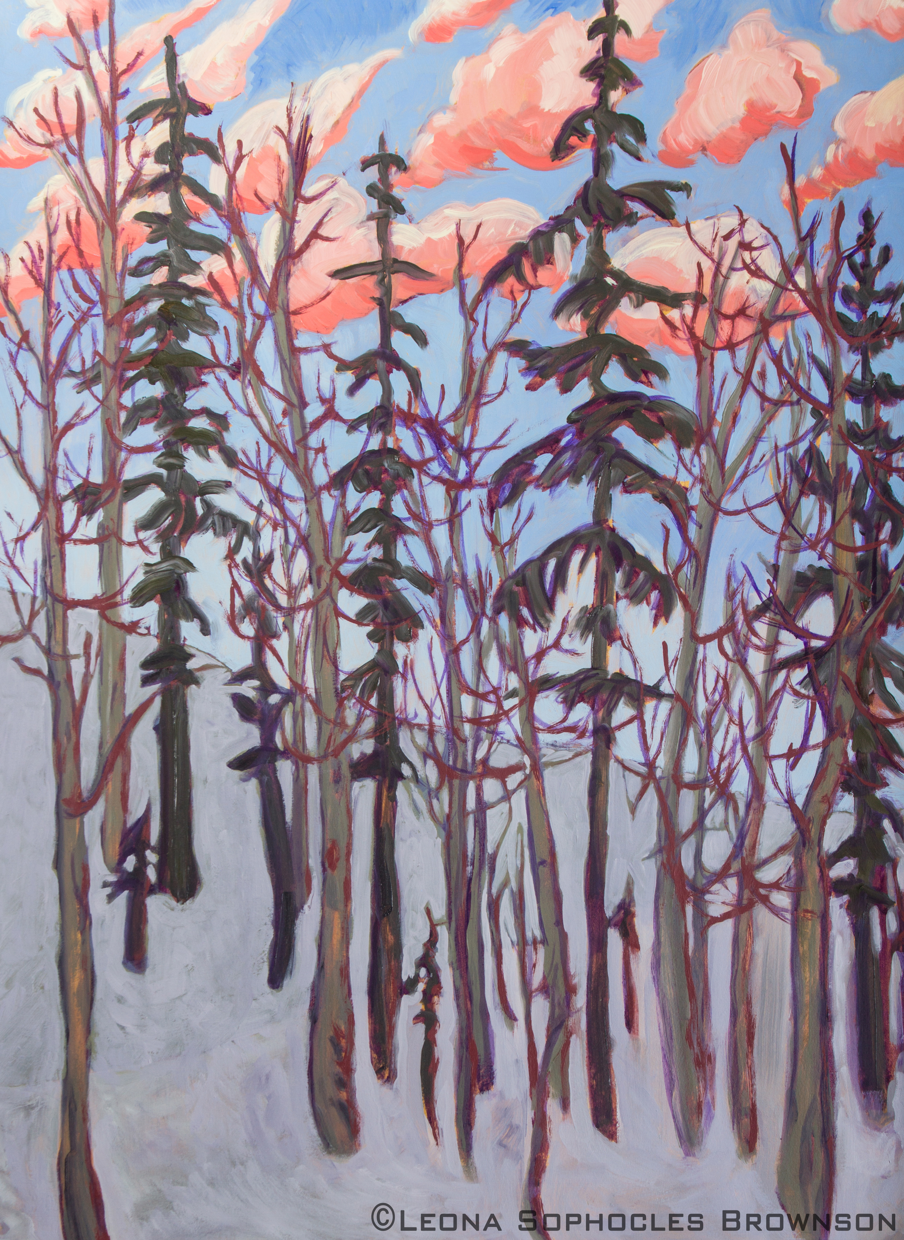 Very simply put, I paint what I love and have a connection to. When I say I had classical training it means that I didn’t just make it all up in my head but had years of learning to interpret what I saw, not necessarily literally, but learning how to really see and observe and then portray in my own unique way. It is so much about making a beautiful line and hoping for strong design. Yes, I do some “Plein Aire” painting but for me, it can be too much information. I rely on it more for note taking then, bring it into the studio to render my own views. Take the “Road Series”, for example. They are not just about places I’ve been but are about motion, speed, Napoleon, composition and more. My “Tree Series” is so much about the initial rendering in purple, which, for me, is a vibrational color that I see when I squint my eyes. They are about positive negative spaces, lovely movement and composition. For me, repetition is striving for perfection or, at least, improvement. As I told my students, the more you do, the better you get. I live by that code. The “Heart Series” is about adventure and emotion. The heart goes wherever I want it to go. These three subject series have been with me for many years. I’m just beginning to explore architectural landscapes. So far so fun. Thank you Santa Monica!